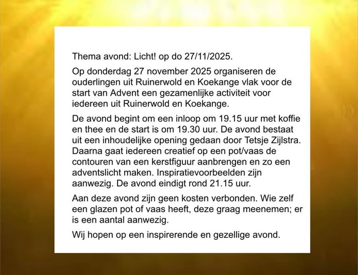 Het opnemen van deze gegevens in een bestand van welke vorm dan ook is niet toegestaan zonder schriftelijke toestemming van de kerkenraad.