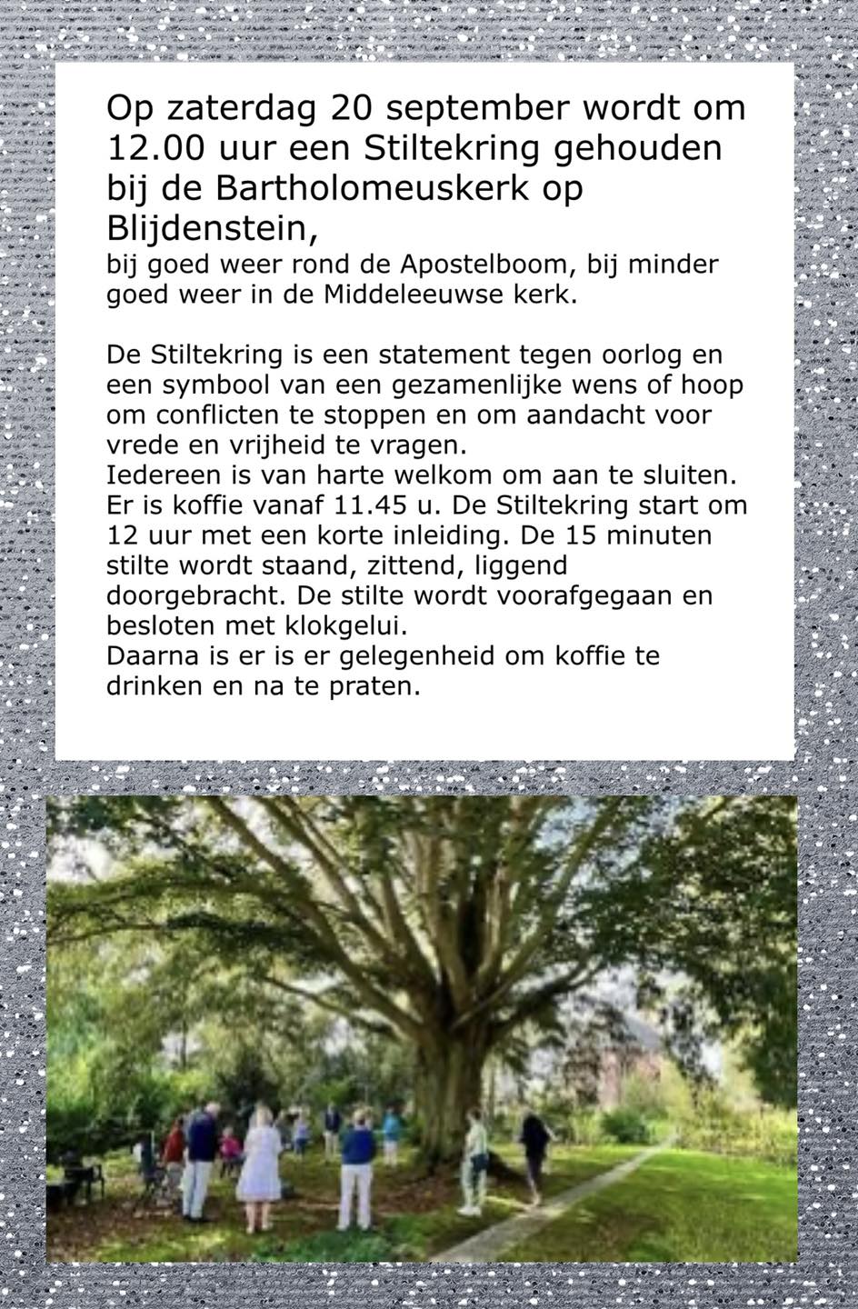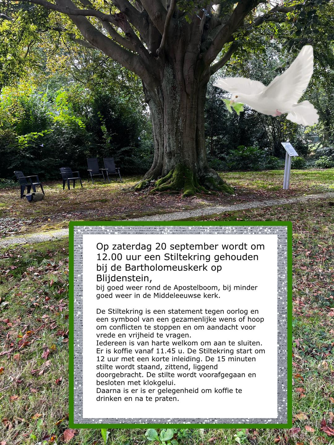 STILTEKRING bij de Bartholomeüskerk te BLIJDENSTEIN, Ruinerwold onder de Twaafapostelenboom.