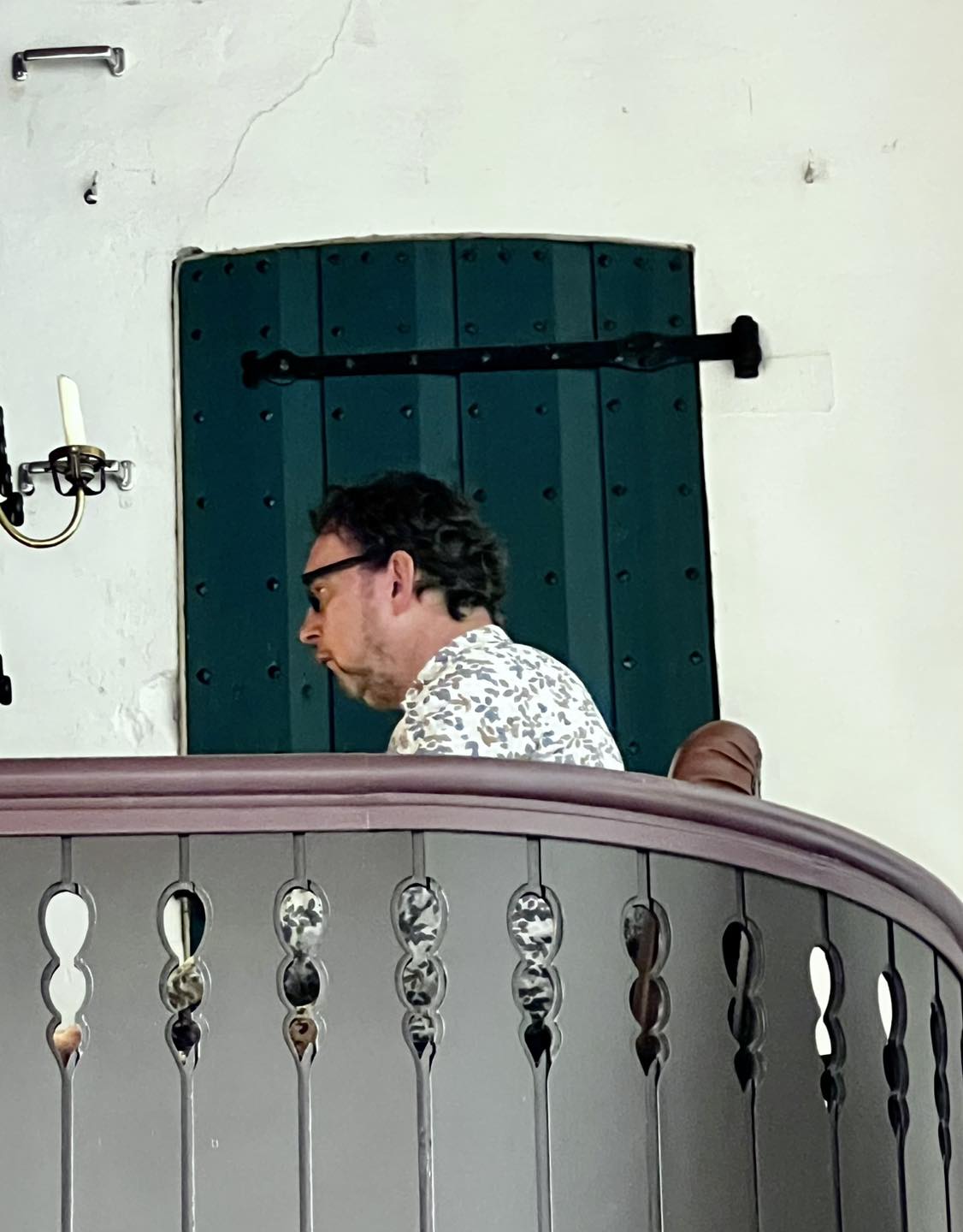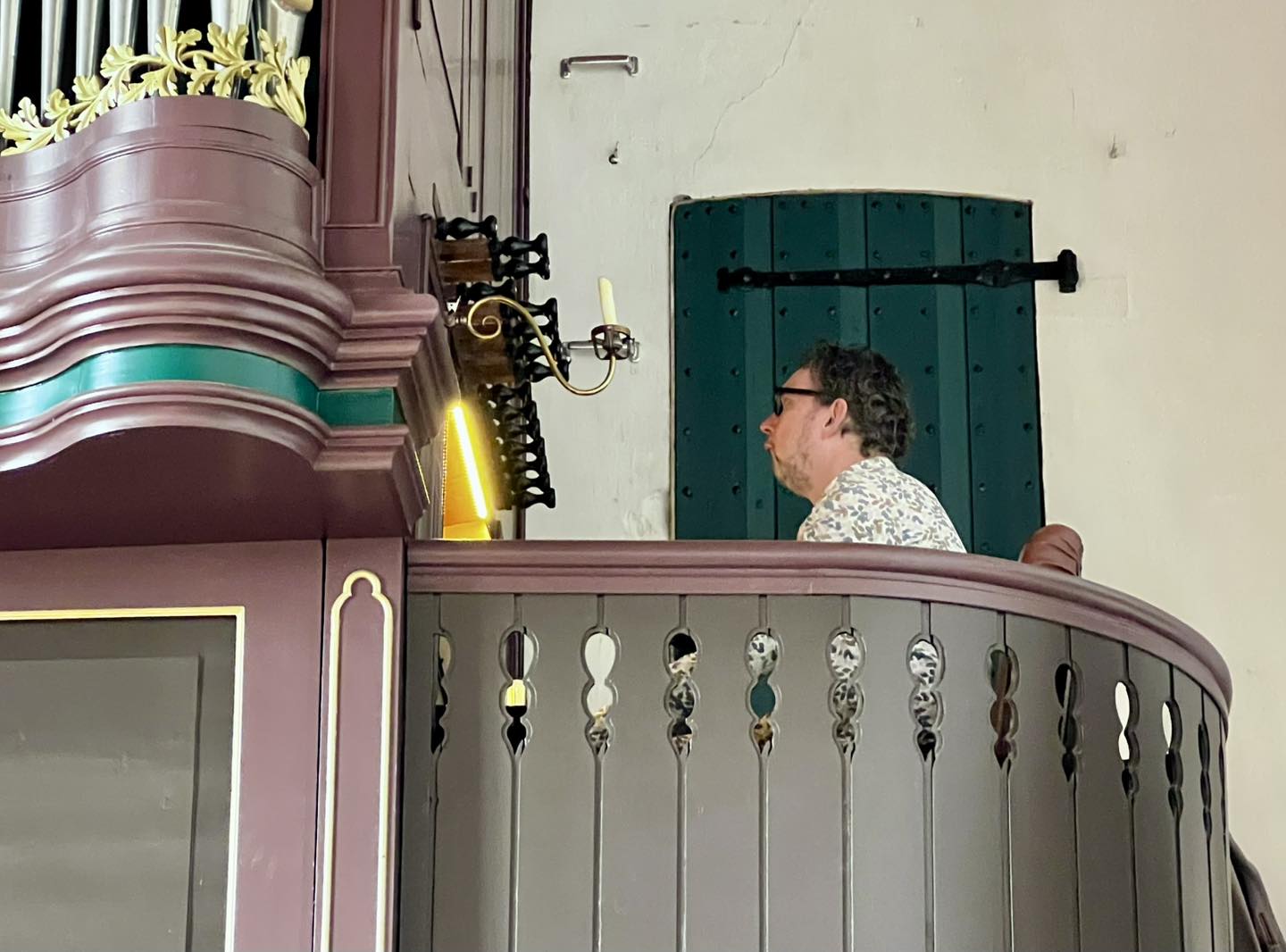 Tetsje maakt de achtergrondmuziek klaar voor het lied dat Albert Metselaar gaat zingen op de melodie van ‘Oh what a beautiful morning’ van Louis Armstrong.