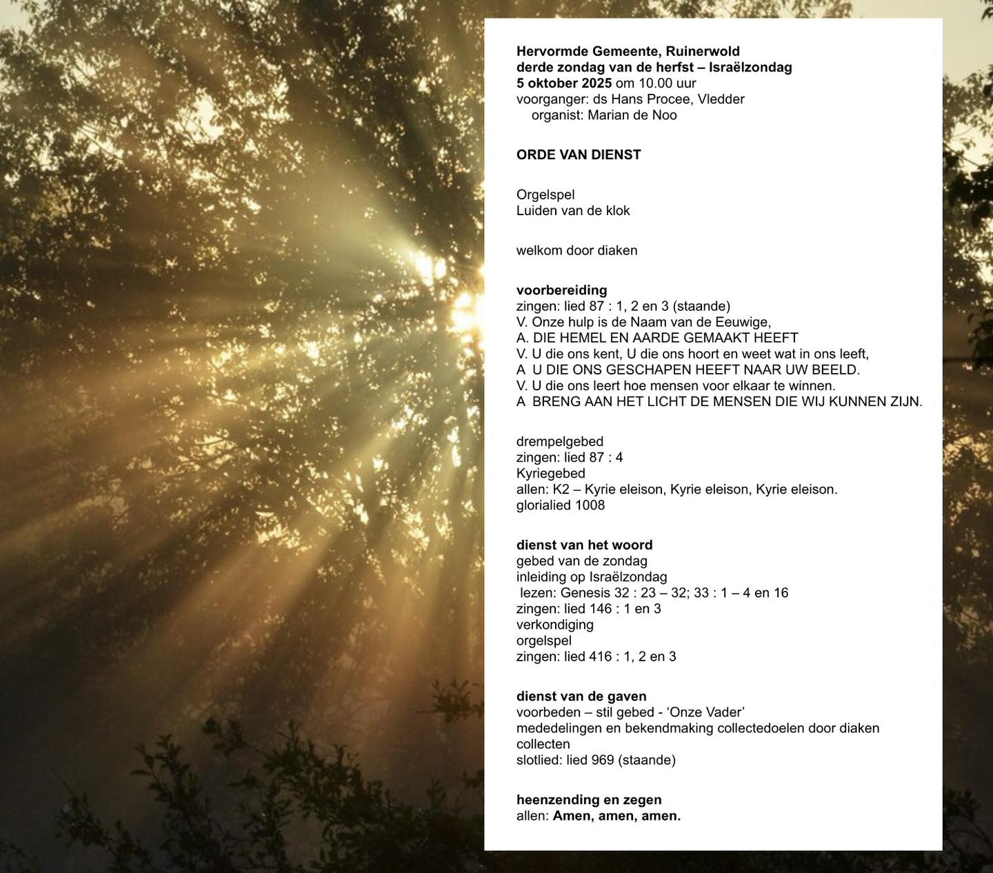 Dienst zondag 5 oktober met ds. H. Procee, Vledder