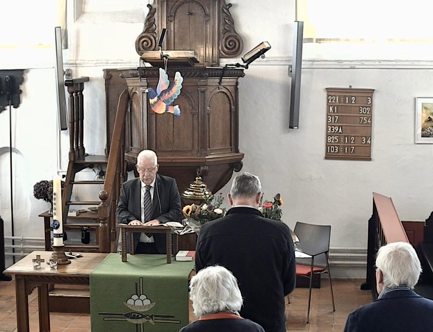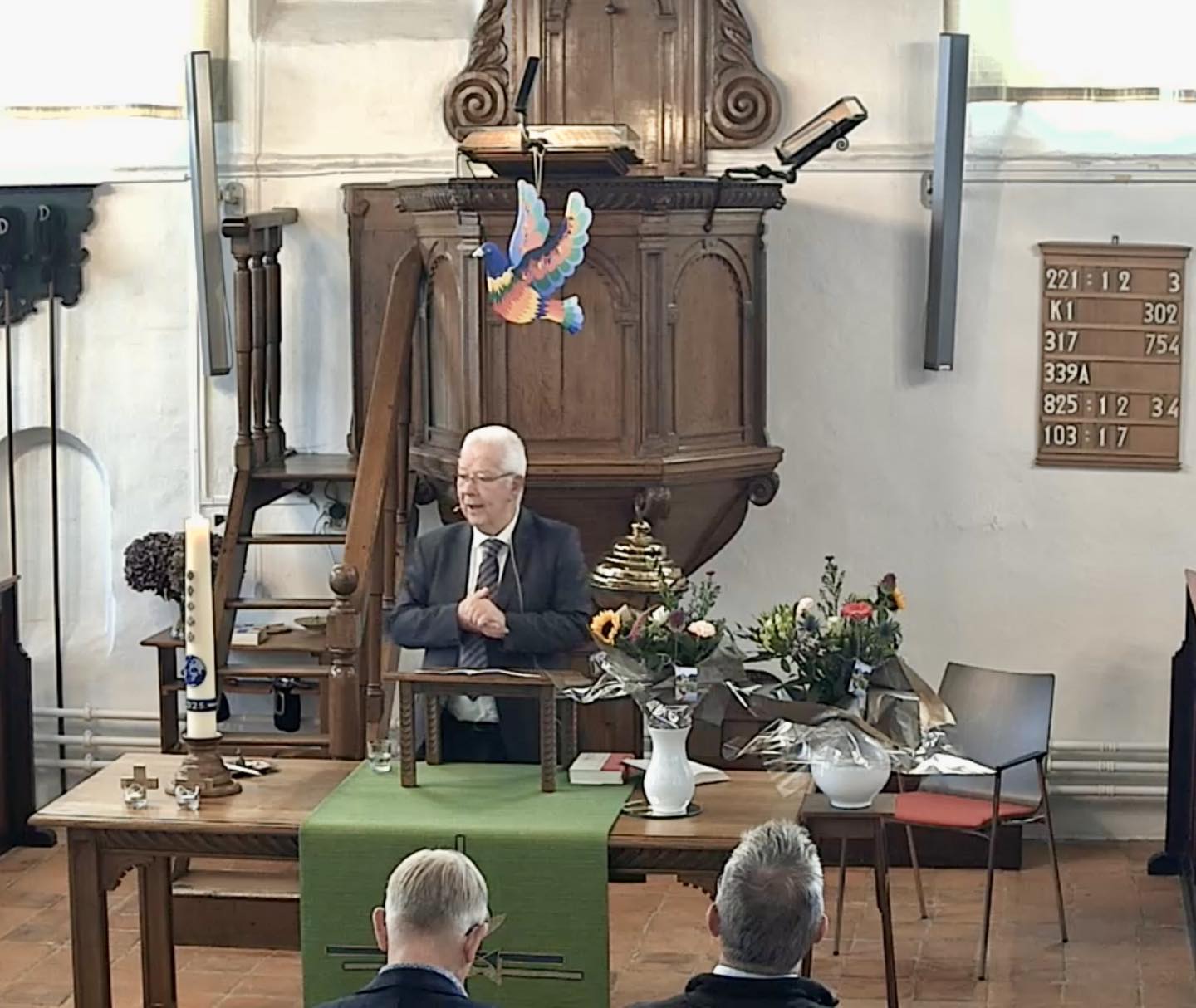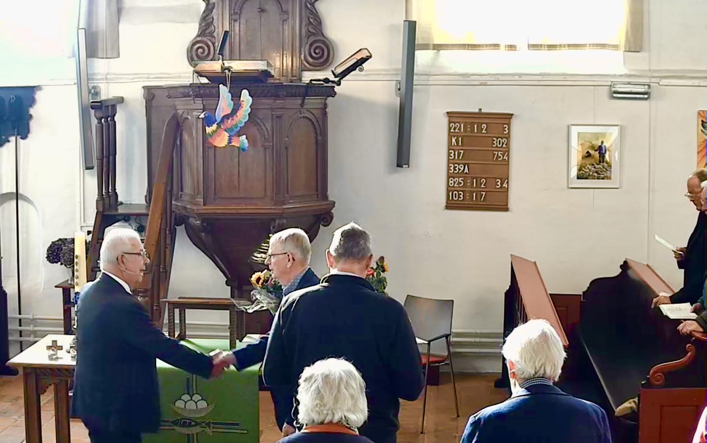 Organist Marjan de Noo. Welkom door Rudy van Goor. Ouderling van dienst Roelof Kuijer. Begroeting. In memoriam. Uitleg over de collecte. De zegen. Bloemen van deze week.