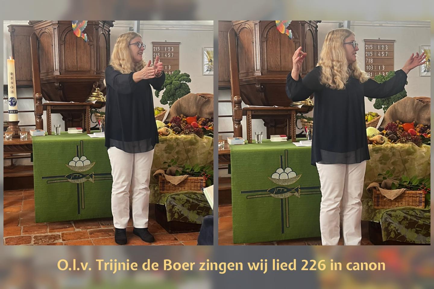 Trijnie de Boer begeleidt de gezongen liederen op de piano.
