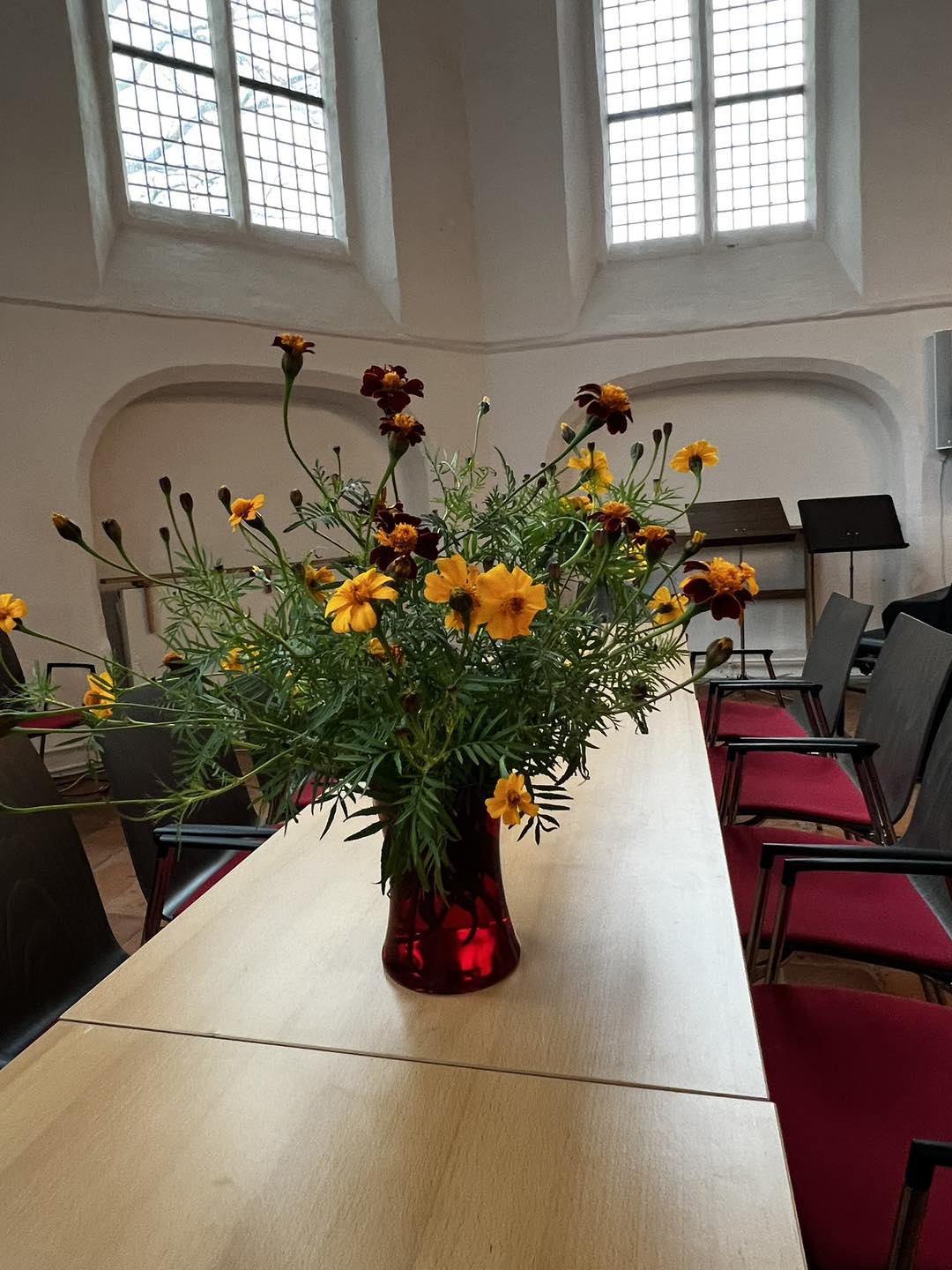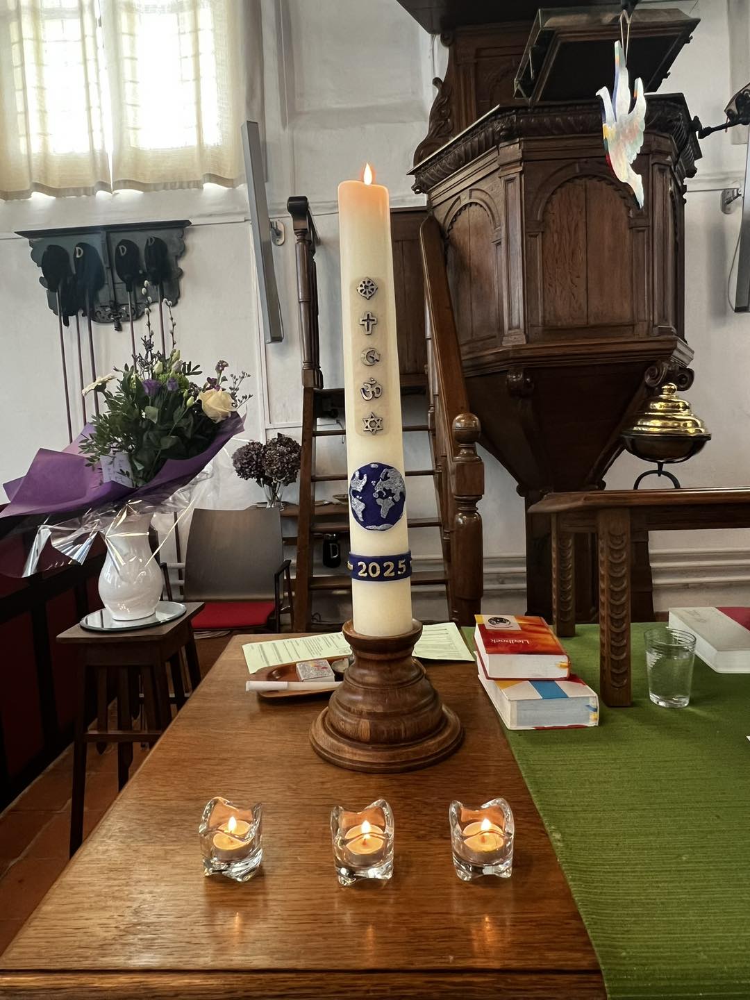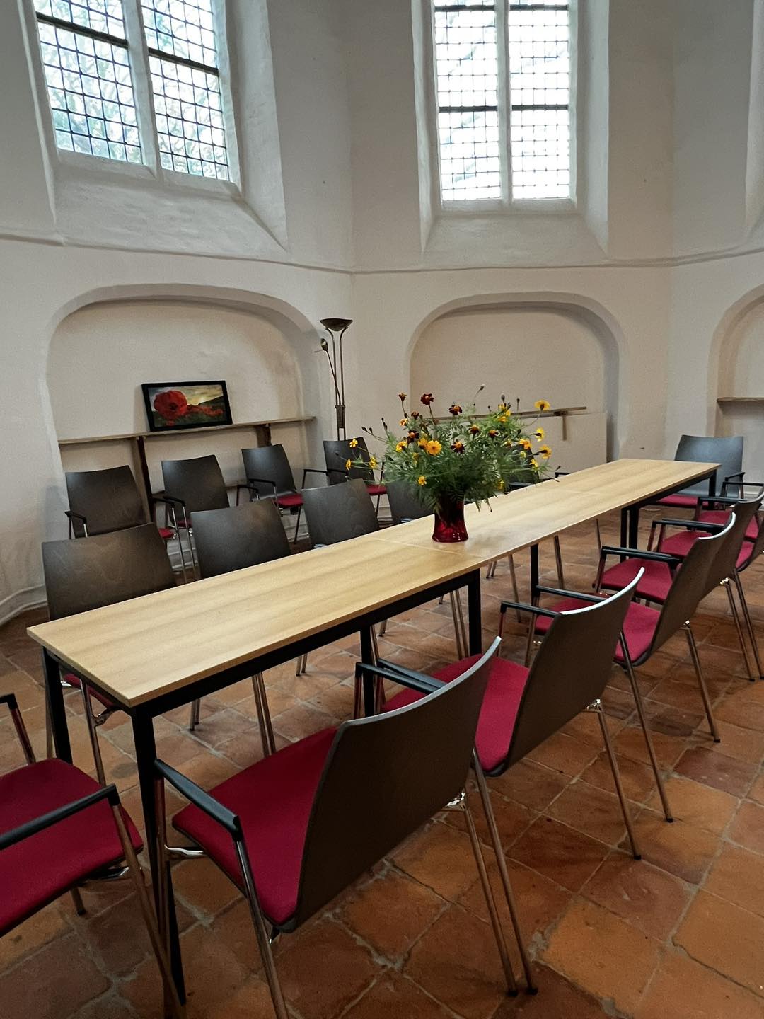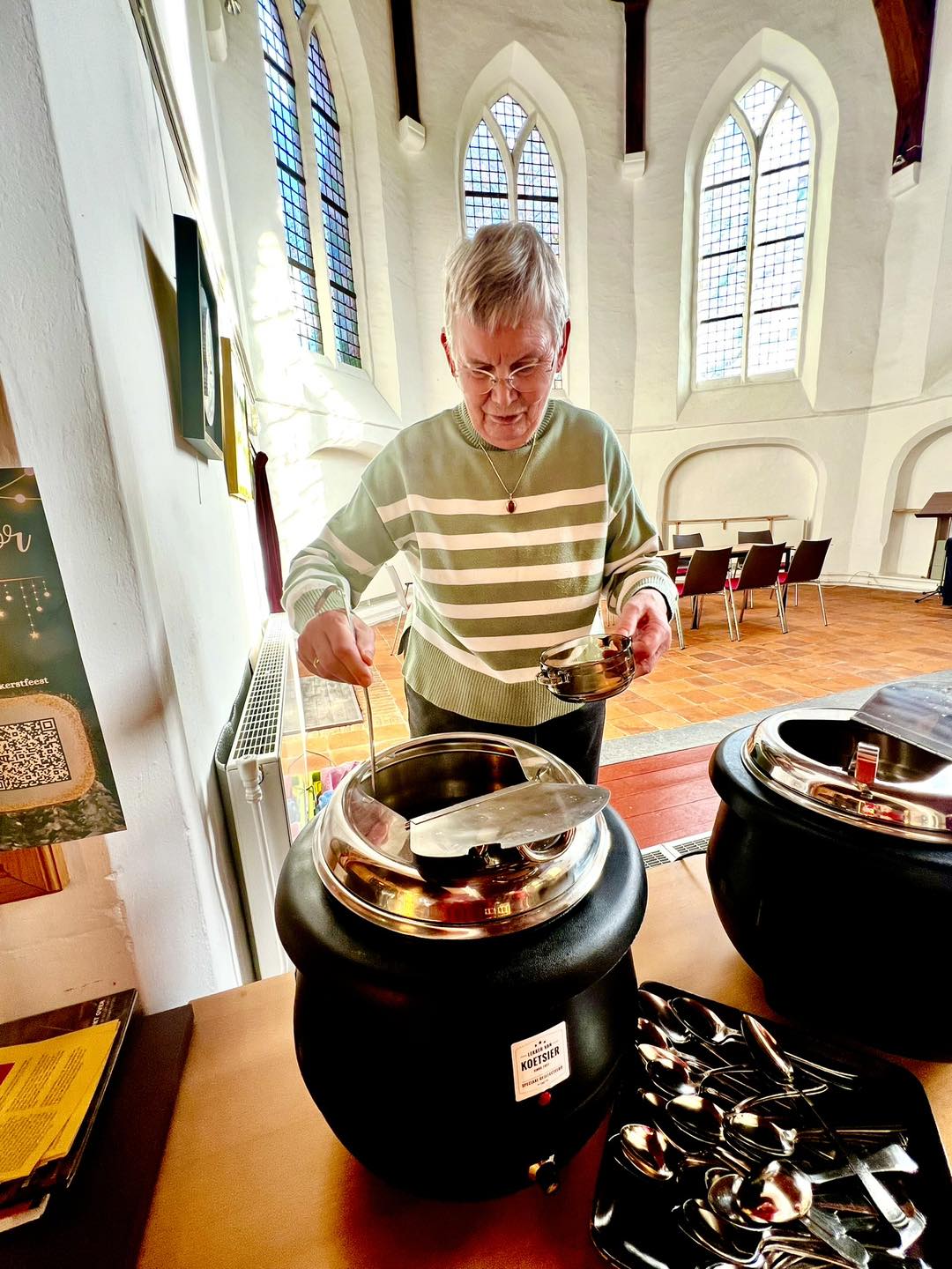 De tafels staan klaar voor de soep en broodjes na de dienst, die ook door verschillende gemeenteleden zijn gemaakt.