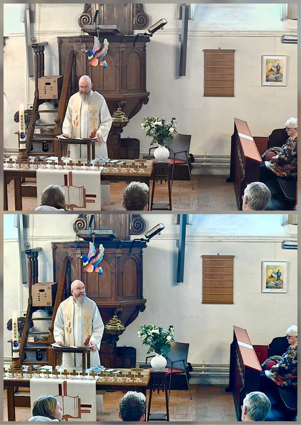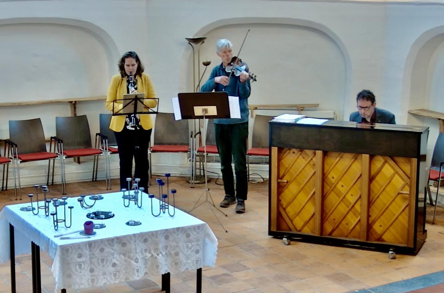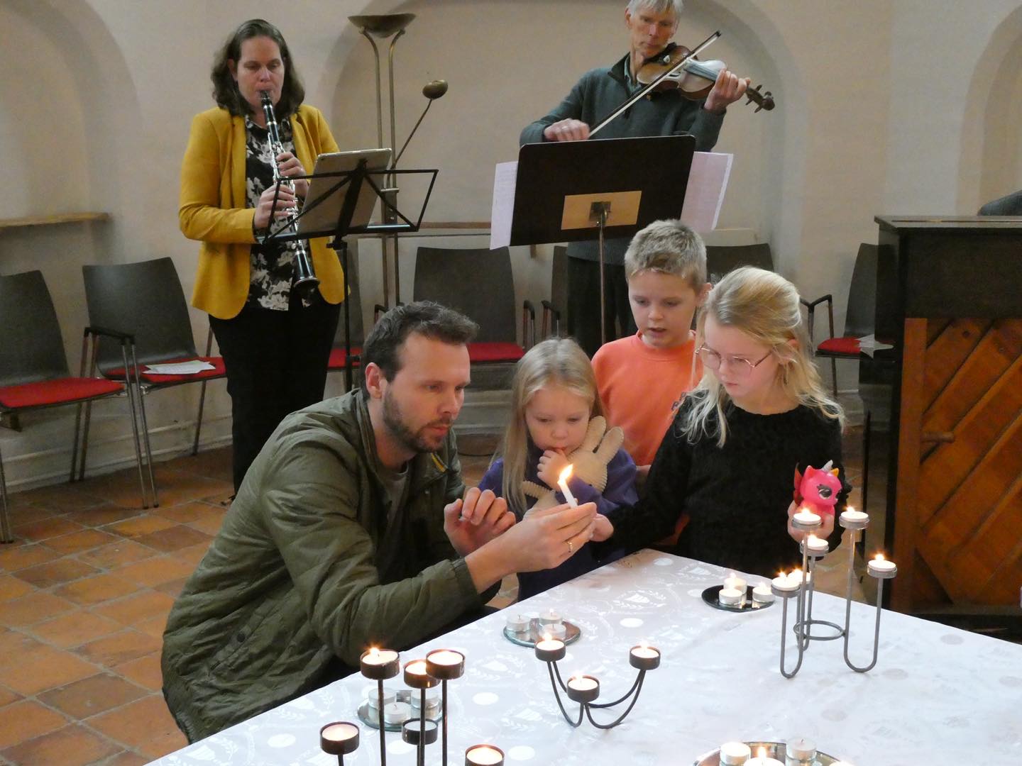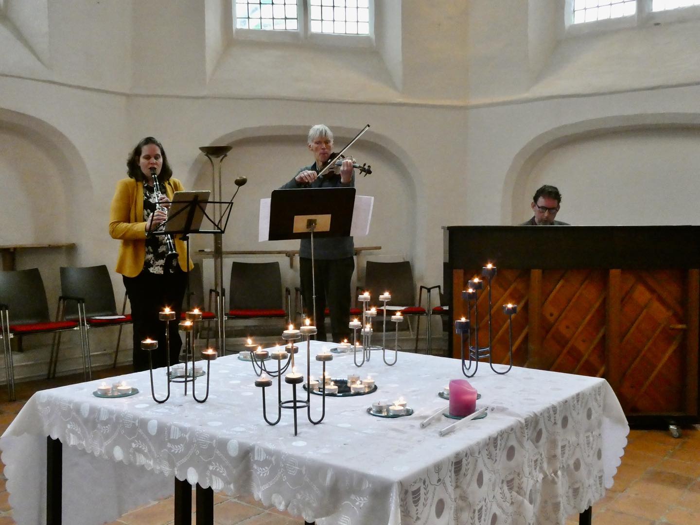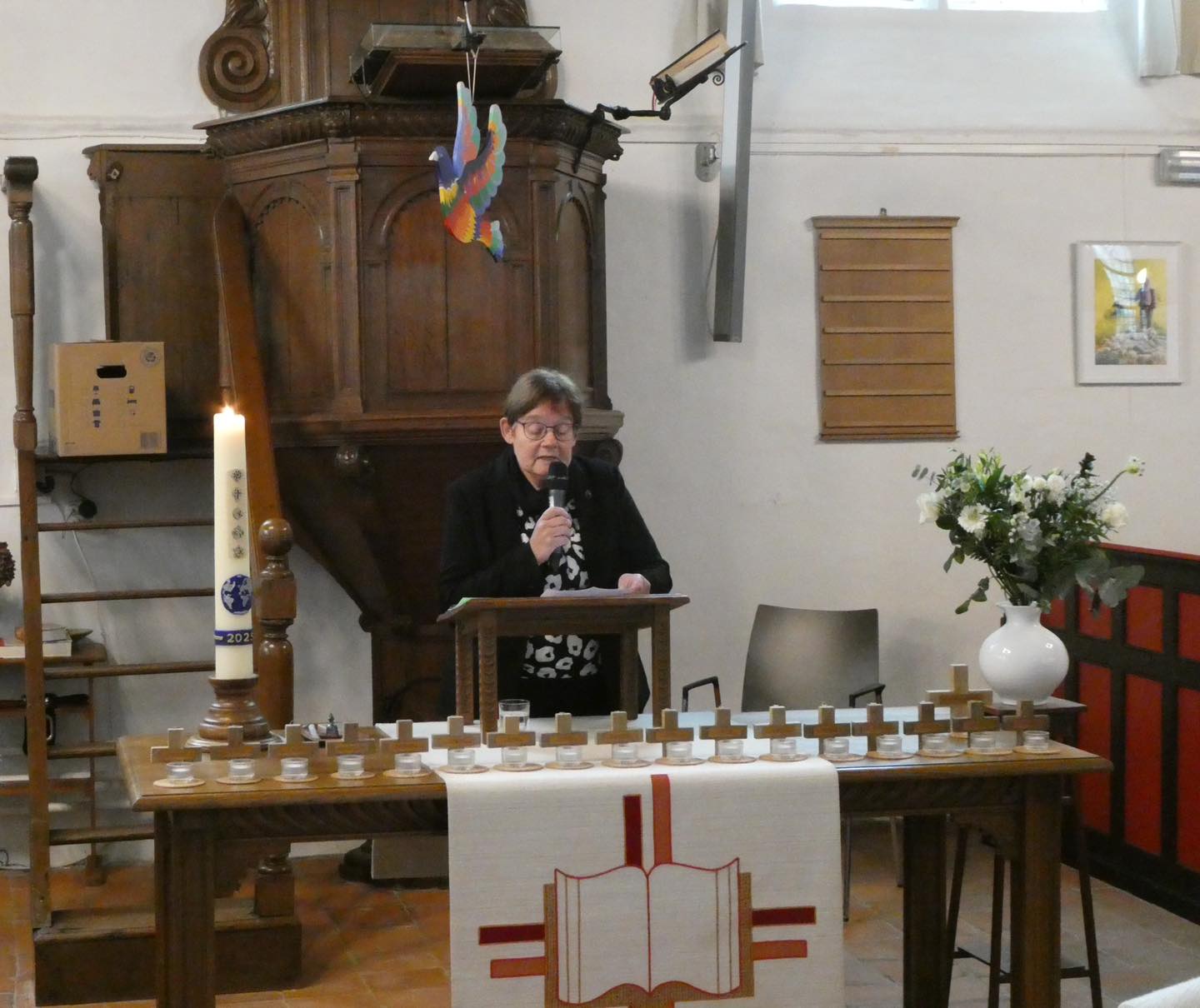 Liturgie. Prachtig spel van het gelegenheidstrio voorafgaand en tijdens de dienst. Welkom en mededelingen Marry Versteeg. Bemoediging en groet. Eerste schriftlezing. Tweede schriftlezing. Voor de overdenking kwam uit een doos een hartvormige ballon. De overdenking. Na de overdenking muziek. Inleiding van het gedenken van de overledenen. Daarna kon ieder die dat wilde een kaarsje aansteken. Organist en pianist Harry Bosma Klarinet Mirjam Oosting-Otten Viool Richard Havinga De zegen.