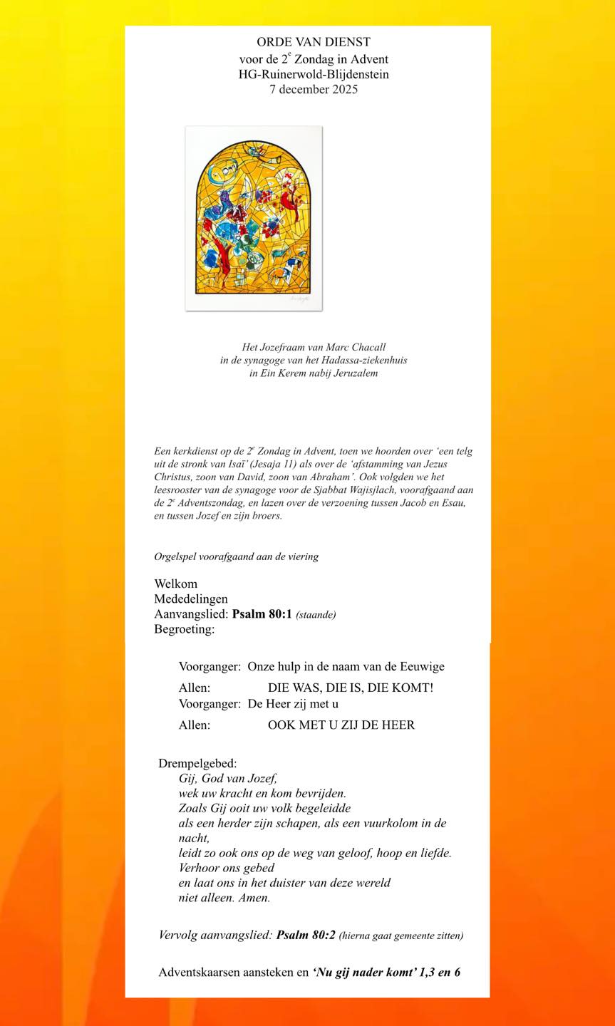 Dienst zondag 7 december met ds. R. Gosker, de Wijk